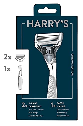 Harry’s メンズ カミソリ 5枚刃 – カミソリハンドル1個 + カミソリブレードリフィル2個 – クロームエディションハンドル