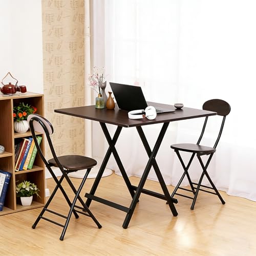 Probasto 折りたたみテーブル&チェアセット ダイニングテーブル 約80×80×74cm 折りたたみチェア 幅25×奥行32×高さ77cm パイプ椅子 完成品 組み立て不要 作業 食事 在宅勤務 3点セット (ダークブラウン)