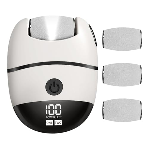 Cileznw 足用角質除去器 – LCD画面 2段階調整 かかと角質研磨 3ローラー付き | 携帯用足グラインダー,自宅 スパ サロン フットケア 夜間ケア 旅行対応