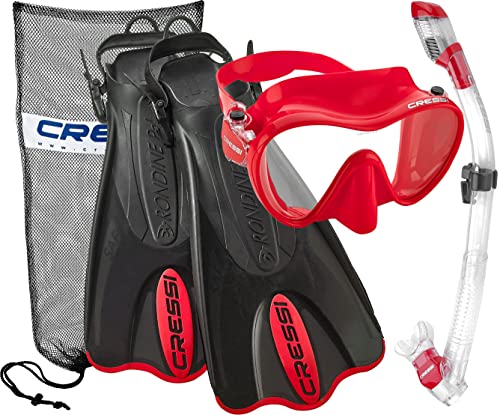 Cressi Italian Design Premium Tempered Glass Lens Frameless Scuba Snorkeling Dive Mask – Dry Snorkel – and Palau Short Snorkeling Fin and Snorkel Set Gear Bag, BKRD-ML