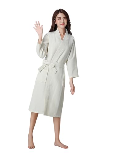 [Jomoku] バスローブ 綿100% ワッフル レディース ガウン ルームウェア 優しい肌触り ホテル お風呂上り 吸水 速乾 保温 バス用品 ショートタイプ(ご注意)