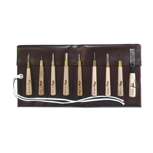 道刃物工業 彫刻刀 版画刀 9本組セット ビニールレザーケース 塩ビ 木版画 ハイス 刃物 職人 家具 木工 木彫 道具 三冨 D