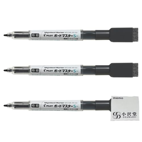 パイロット ホワイトボードマーカー ボードマスターS 極細 イレーザー付 ブラック 3本セット WMBSE-15EF-B OZAWAセット 黒3
