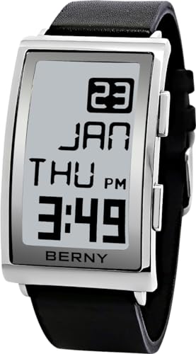 BERNY 腕時計 メンズ 腕時計メンズ デジタル スポーツウォッチ e-ink ディスプレイ アーク ダイヤル 本革バンド ウォッチ 2 タイム ゾーン付き