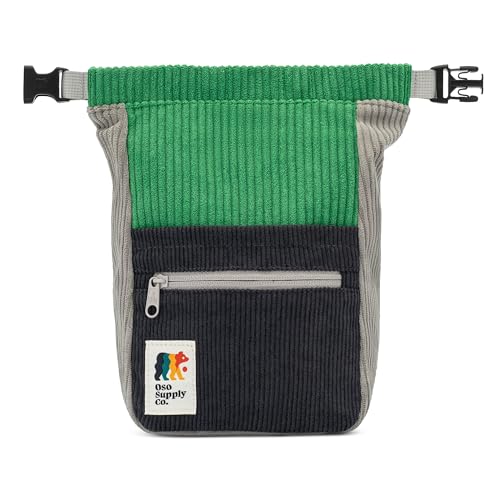 Oso Supply Co – レトロコーデュロイボルダリングバケツ Lサイズ 自立式チョークバッグ ロッククライミング用 マグネットロールダウン開閉 デュアルブラシループ ファスナー付きポケットとポーチ(グリーンとグレー)